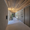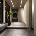 高級リゾートを思わせる、ラグジュアリーでありシックな佇まいの邸宅。外壁にはデザイン性の高い大判の石材を贅沢に使う事で立体感ある表情に。木目調のガレージが外観に色を添え、風格を漂わせております。陰影のある外壁の石と、木質の天井が見事な調和を生み出した玄関ポーチは美しく、お客様を迎えるにふさわしい空間です。