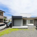 住宅の顔である玄関正面には外観デザインのアクセントとなる大型のすりガラスを配置し、住まう人のプライバシーも考慮。また、外壁に一部デザインされた石貼りの壁、実は内部は使い勝手の良い外部収納 となっております。また自転車を置くスペースも外部からは見えにくい位置に確保するなど、日常生活 に欠かせない部分も細かく配慮した設計となっております。