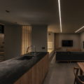 施主様の「四季を通して快適に暮らしたい」という想いを形にした、デザインだけでなく断熱・気密性能にもこだわった住宅。 夏も冬も温度差が少なく、静かな空間は心も体も癒されます。 ライン照明の光と窓から見える庭園が至福のプライベート空間を演出し、日常をほんの少し特別にしてくれます。